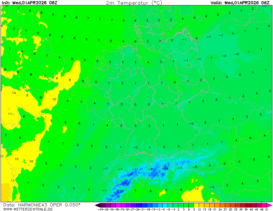 HARMONIE wird in einem europäischen Konsortium entwickelt und dies ist die Ausgabe, die vom KNMI in den Supercomputing-Einrichtungen in Island bereitgestellt wird. Die Ausgabe von Cy43 ist in einem gedrehten Lat-Lon-Raster verfügbar und wird auf unserem Server auf einen Rasterabstand von 0,05 Grad neu gerastert. Das Modell wird stündlich neu initialisiert und läuft bis zu 60 Stunden im Voraus.