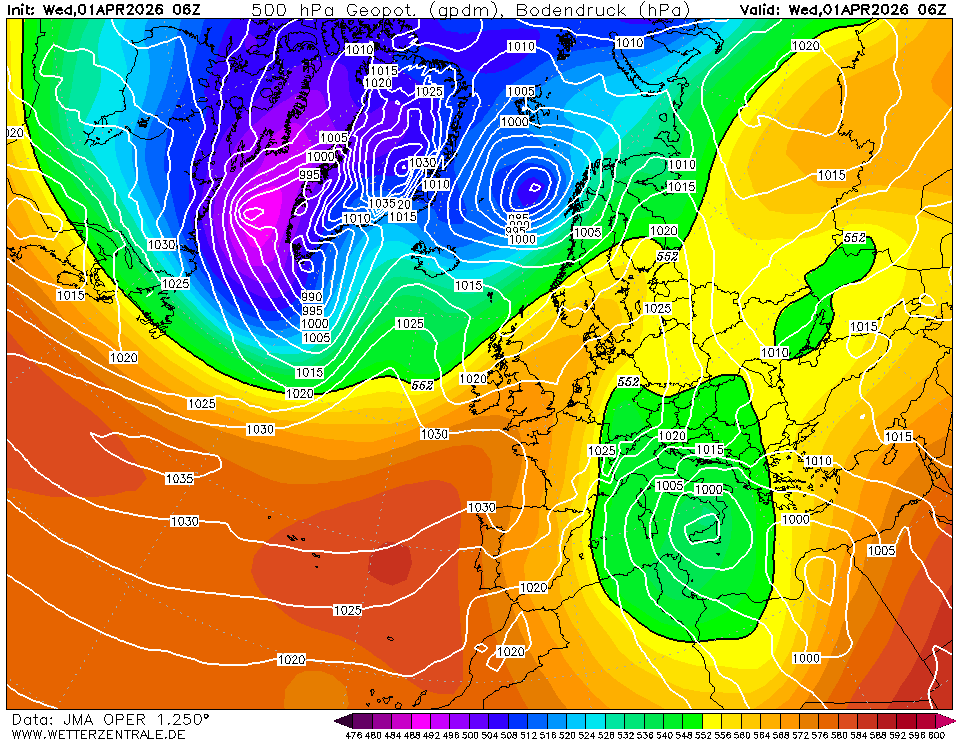 UKMOThe selected variable and region is available, but not for 2026-04-01, 06:00. You will switch back to the first available time step. Model output from the United Kingdom Met Office (UKMO). Maps are updated twice daily around 6:45 und 18:45 UTC. Only basic pressure maps are available and forecast data ranges from day 3 to 6.